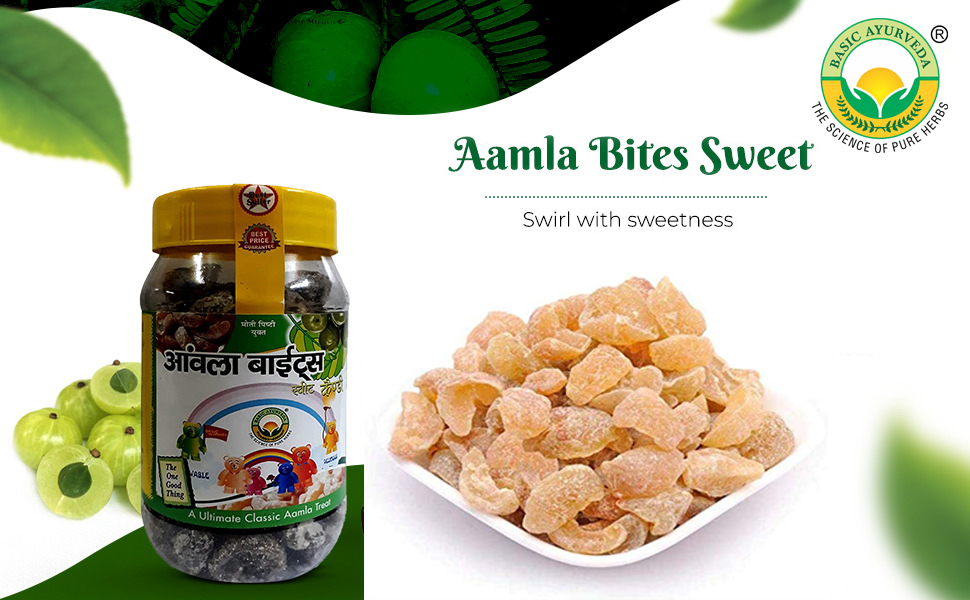 BASIC AYURVEDA Amla Bite Sweet Candy 250g Pack Of 3 (Candied Indian Gooseberry Delicious) | Pure Natural Toothsome Dried Aamla Candy | Ultimate Organic Classic Chewy Fruit With Jar Pack