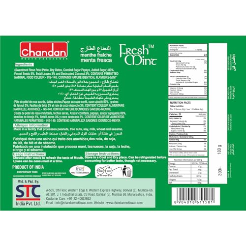 Chandan Mouth Freshener Fresh Mint Pan Blister 30 Pieces 180g