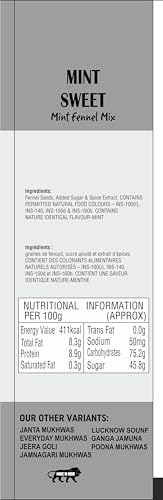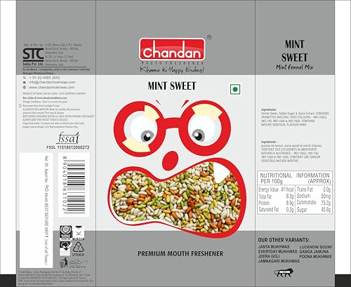 Chandan Mouth Freshener also known as Chandan Mukhwas is a renowned brand offering a delicious mix of sweet salted sweet and sour Mouth Fresheners along with Digestives Appetizers (Pan) Snacks & Confectioneries. Chandan Mouth Freshener with a huge range of product varieties adds a perfect ending to every meal. ABOUT THE PRODUCT: Colourful Mouth Freshener gives a sweet fresh Breath. 100% Natural Food Colours. A perfect Mukhwas for all age groups gives a sweet fresh breath. These colourful seeds are sugar coated fennel seeds which forms a perfect replacement for Candies and also acts as a Mouth Freshener. Helps in digestion & improves stomach health. The seeds can be savoury or sweet-coated in sugar and brightly coloured. Eat'em up at your past time. Fennel seeds are coated with multi coloured sugar to make a popular confection that is both used as a mouth freshener and digestive stimulant. Fennel Seeds are very useful to help indigestion bloating and constipation because of the oils found in these seeds. Fennel seeds contain estragole fenchone and anethole which contribute to the plant's antispasmodic and anti-inflammatory properties. Fennel Seeds have a cooling effect on the body. It is a good idea to consume a fennel seed drink during the scorching summer to relieve heat from the body.