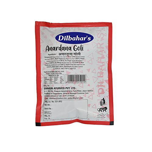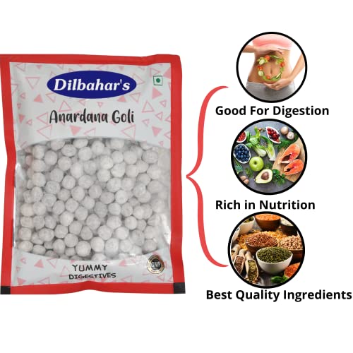 Dilbahar's Anardana Goli is a tangy-sweet digestive made from sun-dried pomegranate seeds (anardana) and an exquisite blend of Indian spices. This traditional treat is loved for its ability to enhance digestion while offering a delicious burst of flavor in every bite. Packed with antioxidants vitamins and natural digestive enzymes it helps soothe acidity and supports gut health. The balanced combination of sweet tangy and slightly spicy flavors makes Anardana Goli an irresistible mouth freshener. It is free from artificial preservatives synthetic colors and chemicals ensuring a pure and natural taste experience. Ideal for post-meal consumption as a travel snack or a quick energy booster Anardana Goli is suitable for all age groups. Enjoy this classic Indian digestive for a delightful and healthy indulgence.