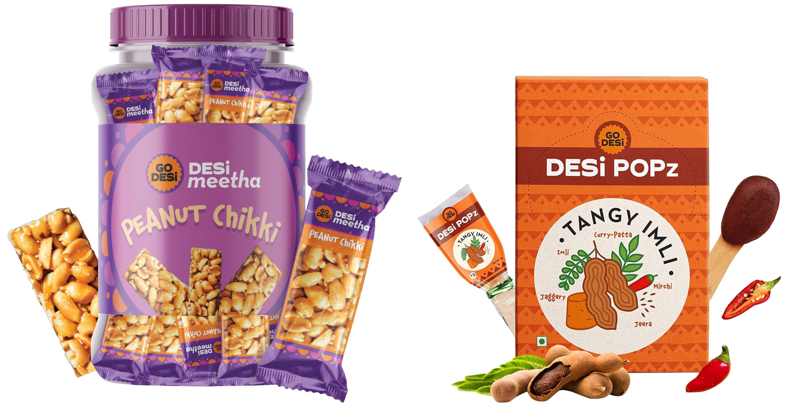 Go Desi Peanut Chikki Bar 50 pieces & Desi Popz Imli Pop 50 Pieces Combo