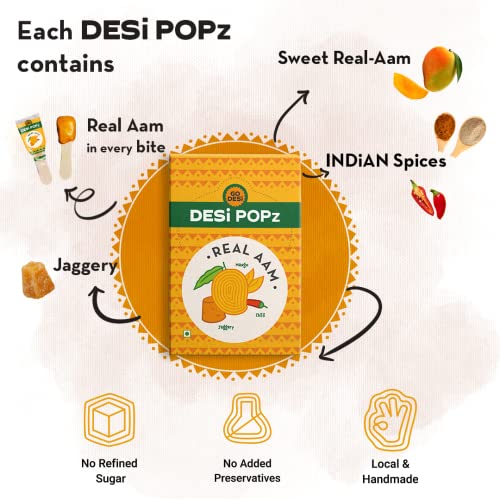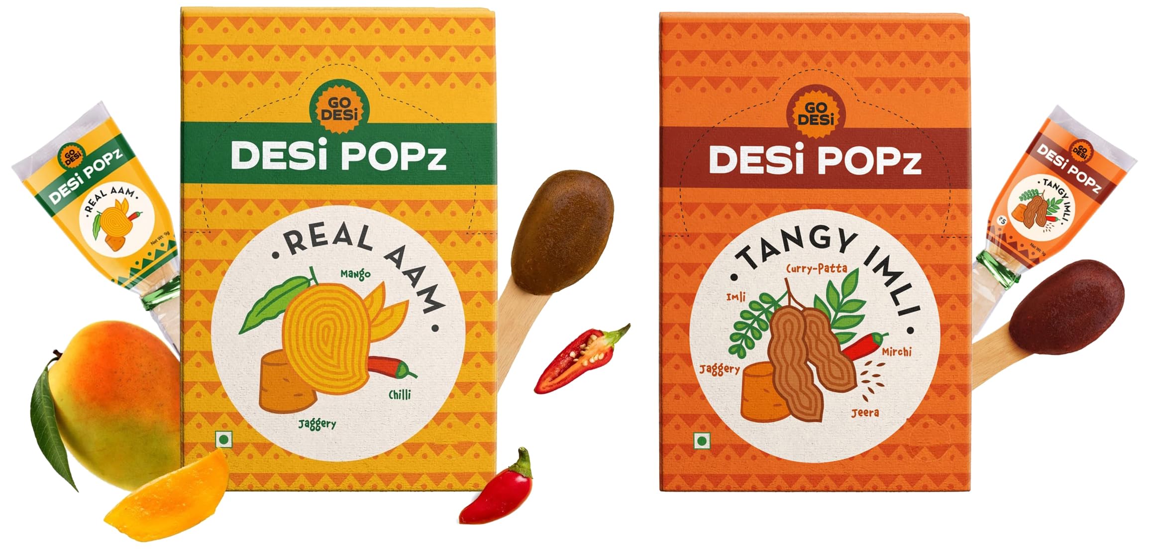 GO DESi Imli Pop Tamarind & Jaggery Candy | 40 Pieces | Tangy Imli | Imli Candy | Lollipop | Digestive CandyImli pop or Imli Candy is an age-old traditional spicy sour treat made with fresh and natural tamarind jaggery chilli and curry leaves. Made by hand in small rural kitchens. Every lick will take you back to your childhood. Unlike other packaged food go desi products are not made at a factory they are prepared by hand by micro-entrepreneurs women or farmer in rural areas.GO DESi Popz Real Aam | 40 Pieces | Aam Candy | Fruit Snacks | Lollipop | Mango Pop | Fruit CandyDESi POPZ is a handmade mango candy made with natural Mango jaggery and DESi spices. Made by hand in small rural kitchens. Every lick will take you back to your childhood. Unlike other packaged food go desi products are not made at a factory they are handmade in micro-units setup in rural areas.