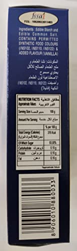 The product in displays is a pack of custard powder (pack of 5) which consists of edible starch and edible common salt.contains permitted synthetic food colour (e102e110e122) & added flavour (vanilla).The package contains 625 gm and has shelf life of 18 months.It is recommended to store in a cool & dry place away from direct sunlight and away from odourful products such as soaps etc.