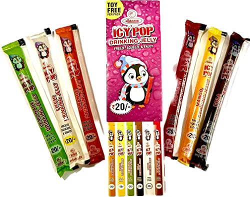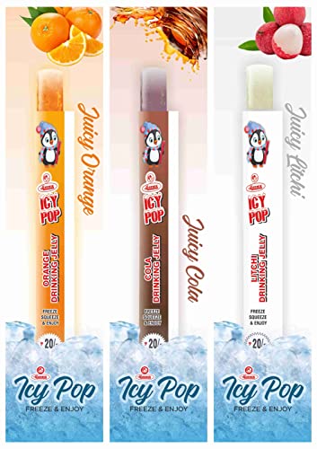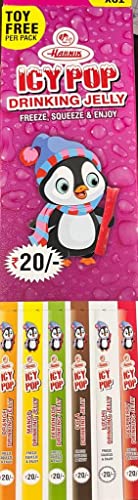 Harnik Icy Pop ! Each box contains 12 assorted pieces of vegeterian drinking jelly . Freeze sip and enjoy . There are 2 ways to enjoy this freeze and sip directly or keep to thaw for a minimum of 2 minutes . Flavours - Lemonade Cola LitchiOrange Raspberry and Mango