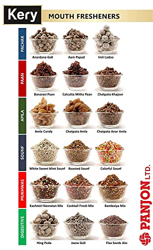 100% Natural & Authentic Indian Taste Premium Packaging comes in a handy air tight jar bottle pack so the flavors & variety don't escape easily. Prepared processed and packed in a very hygienic condition to ensure better quality and authentic flavour. Our Mukhwas Set is infused with the goodness of fruits organic herbs and ingredients which are proven to be beneficial for health & digestion.This Indian after-meal snack is used for digestion widely used as a mouth freshener especially after meals.At Kery we produce only the best and so the dry ingredients used to make our are sourced exclusively from responsible farmers and producers. With the use of best industry practices we produce the highest quality snacks.Try all Pachak Ladoo Khajoor Aam Papad Jeeragoli White Sauf Banarasi Pan Anardana & Navratan Mukhvas.