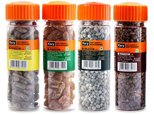 Panjon pioneer in health products since 1977 present their premium range of Kery Mouth fresheners & Kery Candies. Kery Pachak Mukhwas are Infused with the goodness of handpicked fruits and best quality ingredients to stimulate the digestive enzymes and acts as an appetizer. It helps in digestion & improves stomach health. Try all 18 flavours of Kery Mouth fresheners & 10 Flavours of Kery Fruity Candies!!!! Kery Anardana Goli Aam Papad Jeera goli White sweet saunf Colorful saunf Flax seeds Banarasi paan Calcutta paan Sounf fresh mix Kashmiri Navratan Mix Anar Amla Chatpata Khajoor Imli  Ladoo Bambaiya mukhwas Hing peda Amla Candy Chatpata amla and more. Try all our 20 flavours to tickle your taste buds. To maintain freshness shake the bottle upside down and keep it in a cool and dry place. This Product is 100% Vegetarian.