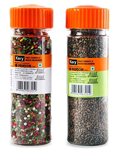• Kery Mouthfreshener Kashmmiri Navaratan Mix & Roasted Alsi Mukhwas Mouthfreshener 2 Bottles 260g100% Natural Digestive Mukhvas
