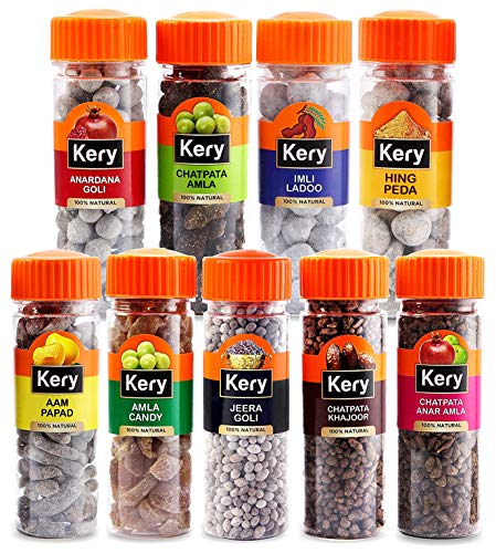 100% Natural & Authentic Indian Taste Premium Packaging comes in a handy air tight jar bottle pack so the flavors & variety don't escape easily. Prepared processed and packed in a very hygienic condition to ensure better quality and authentic flavour. Our Mukhwas Set is infused with the goodness of fruits organic herbs and ingredients which are proven to be beneficial for health & digestion.This Indian after-meal snack is used for digestion widely used as a mouth freshener especially after meals.At Kery we produce only the best and so the dry ingredients used to make our are sourced exclusively from responsible farmers and producers. With the use of best industry practices we produce the highest quality snacks.Try all Pachak Ladoo Khajoor Aam Papad Jeeragoli White Sauf Banarasi Pan Anardana & Navratan Mukhvas.