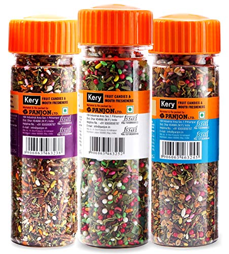 Kery Mouth Freshener Kashmiri Navratan Mix Cocktail Fresh Mix Bambaiya Mix Mukhwas [100% Digestive & Natural] 3 Bottles 390 grams