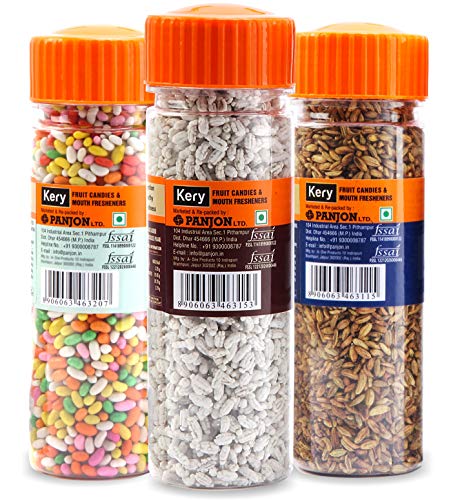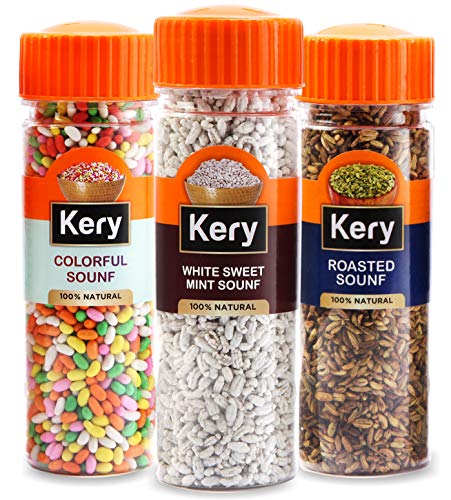 • Kery Mouth Freshener White Sweet Saunf Colourful Saunf Roasted SaunfMukhwas [100% Digestive Fennel Mukhwas] 3 Bottles 360g