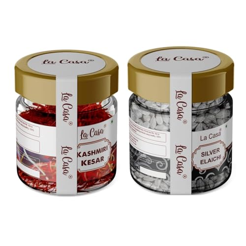 You'll LOVE our Silver Coated Cardamom Pod and Saffron--Here's Why: - 100% Natural Non-GMO Gluten Free No preservatives or "fillers" & Great Flavor! - Packed in a no barrier Plastic Jar let us tell you how important that is when using high quality Indian Spices! - La Casa is a Indian Brand selling food products for over 15 years buy with confidence! - Authentic Indian Product Alternate Names:Silver Elachi Hari Elachi (Hindi) Saffron Kesar