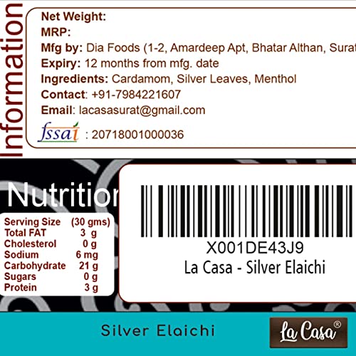 You'll LOVE our Silver Coated Cardamom Pod--Here's Why: - 100% Natural Non-GMO Gluten Free No preservatives or "fillers" & Great Flavor! - Packed in a no barrier Plastic Jar let us tell you how important that is when using high quality Indian Spices! - La Casa is a Indian Brand selling food products for over 15 years buy with confidence! - Authentic Indian Product Alternate Names:Silver Elachi Hari Elachi (Hindi)