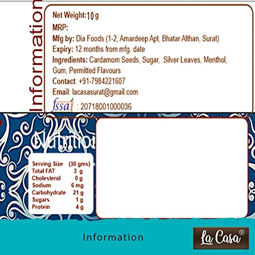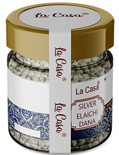 La Casa Silver Coated Elaichi Dana | Premium Mouthfreshner | Green Cardamom And Silver Leaves | Pearls | 10g