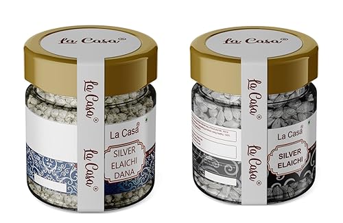La Casa Silver Coated whole Elaichi and Dana | Combo of 2 | Premium Mouthfreshner | Green Cardamom And Silver Leaves | Pearls | 10gx2