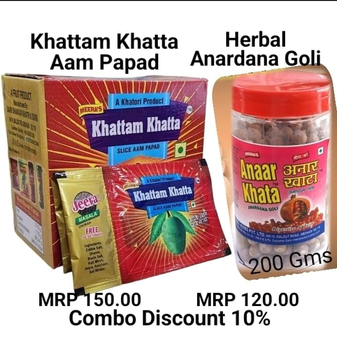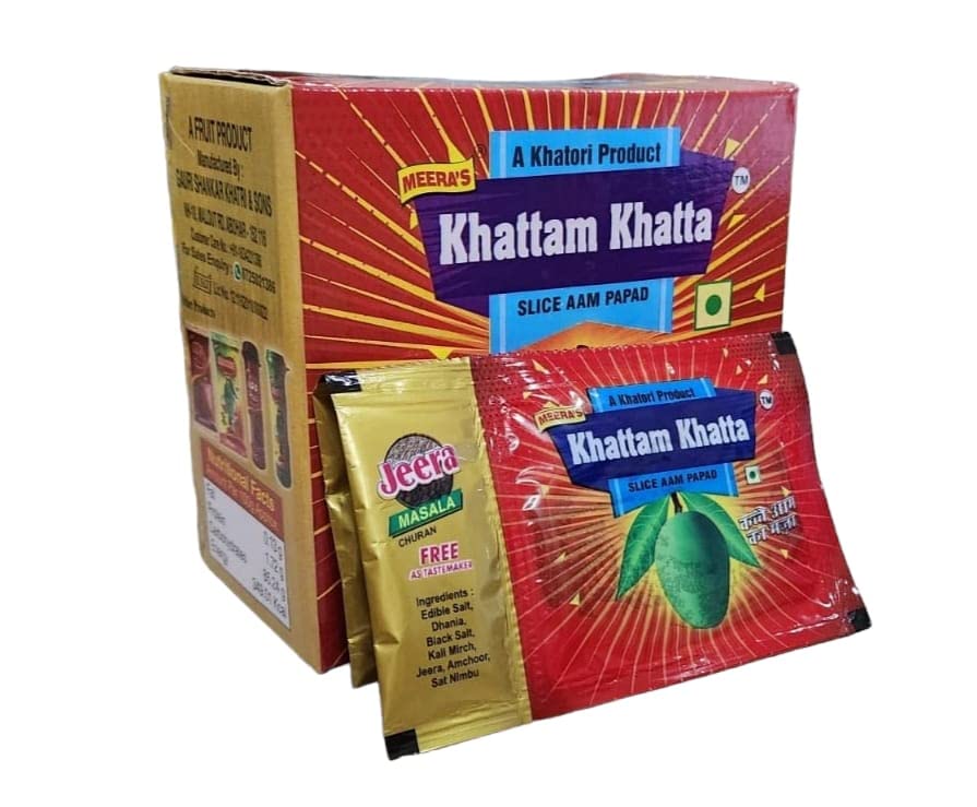 Ingredients : Mango and other Fruit Pulp Sugar Starch Approved Preservatives Edible Salt Dhania Black Salt Kali Mirch Jeera Amchoor Sat Nimbu. Aamchur 3.47% Anardana 6.44% Saunf 0.77% Coriander 1.29% Cumin 1.29% Black pepper 0.77% Pipal 0.77% Black Salt 1.29% Salt 3.87% Sat Nimbu 2.06% Sugar 77.56% Storage Instructions : Keep in Cool and Dry Place. Shelf Life : Best Before 9 Months from the date of manufacturing