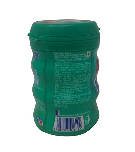 Mentos Pure Fresh Gum Bottles so that you and your friends never run out this refreshing gum. New Mentos Pure Fresh Sugar Free Gum with Natural Green Tea Extract Flavour. A coated liquid filled gum in Fresh Mint Flavour. Helps Purify Breath and leaves behind an intense freshness sensation in your mouth. Available in the Stylish curvy bottle that's just perfect for your work desk or in the car to share with friends. This Product is 100 Percent Vegetarian. Sugar Free Coated Gum For Oral Hygiene and Fresh Breath..