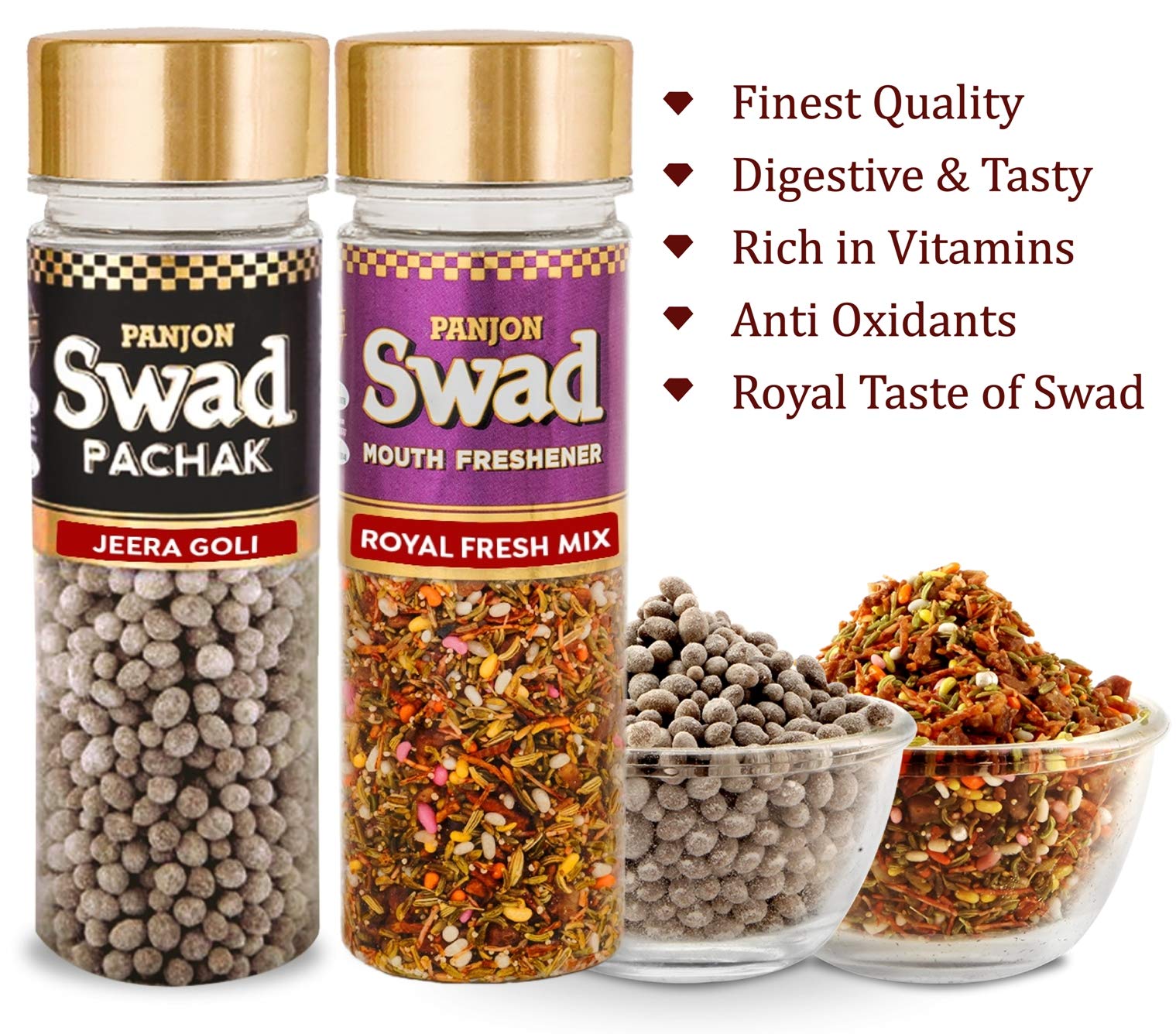 Panjon Swad Jeera Goli & Royal Fresh Mix Pachak (Mukhwas Mouth Fresheners) 2 Bottles 260g