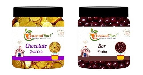 Experience a delightful fusion of sweetness and tradition with our Chocolate Gold Coin and Bor Rasila. The Chocolate Gold Coin is a luxurious treat that captivates with its rich creamy chocolate encased in a shimmering gold foil making it an irresistible indulgence perfect for gifting or celebrating special moments. Paired with Bor Rasila a traditional snack made from the finest quality jaggery and dried fruits this combo brings a wholesome and flavorful experience that's both nostalgic and energizing. Each bite of Bor Rasila delivers a delightful sweetness complemented by a chewy texture making it a perfect companion to the smooth chocolate. Together these treats create a balanced and delightful offering that is sure to enchant your taste buds and add a touch of joy to any occasion!