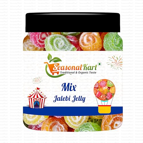 Indulge in the delightful world of Mix Jalebi Jelly a colourful assortment of spiral-shaped jellies that brings the essence of traditional Indian sweets to a modern confectionery format. These vibrant jellies coated with crystalline sugar come in an array of fruity flavours and feature a distinctive spiral pattern reminiscent of the beloved Indian dessert jalebi. Each piece offers a perfect balance of chewy texture and sweet taste making them an ideal treat for festive occasions or everyday snacking. The convenient jar packaging keeps the jellies fresh and easily accessible. These sweets are particularly popular among children and adults alike offering a unique fusion of traditional Indian dessert aesthetics with contemporary jelly confectionery. Perfect for sharing at parties gifting during celebrations or simply enjoying as a sweet treat with family.
