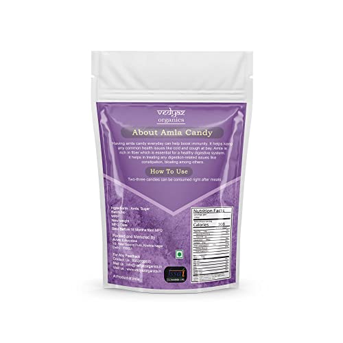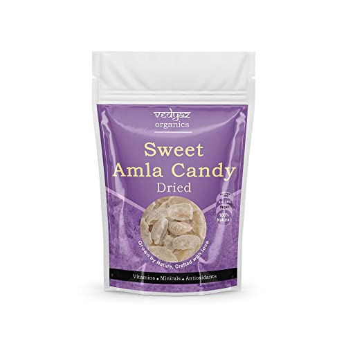 Introducing VEDYAZ ORGANICS Amla Candy a delicious and nutritious way to boost your health! Made from fresh organic Indian gooseberries also known as Amla our candy is a natural source of Vitamin C and other essential nutrients. Our Amla Candy is handcrafted by skilled artisans who use traditional methods to preserve the fruit's natural goodness. We only use the finest quality Amla carefully selected and sun-dried to retain their natural flavour and nutritional benefits. Each piece of VEDYAZ ORGANICS Amla Candy is bursting with tangy and sour flavour making it an irresistible snack for all ages. It is a perfect snack for health-conscious people who are looking for an all-natural sugar-free and gluten-free alternative to satisfy their cravings. Our Amla Candy is also an excellent immune system booster that helps prevent colds flu and other infections. It also supports healthy digestion lowers cholesterol levels and improves skin and hair health. VEDYAZ ORGANICS Amla Candy is 100% organic vegan and free from any artificial colours flavours and preservatives. It comes in a convenient resealable pack making it easy to carry around and enjoy anytime anywhere. So if you are looking for a healthy delicious and guilt-free snack try VEDYAZ ORGANICS Amla Candy today! It is a treat you won't regret.