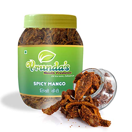 Vrunda's Spicy MangoTikhi Kairi Masala Kairi Chatpati Kairi Sour and Spicy Dry Pickle -500 Gm [ Mouthfreshner Digestive Churan Tasty Paan Indian Sweets]
