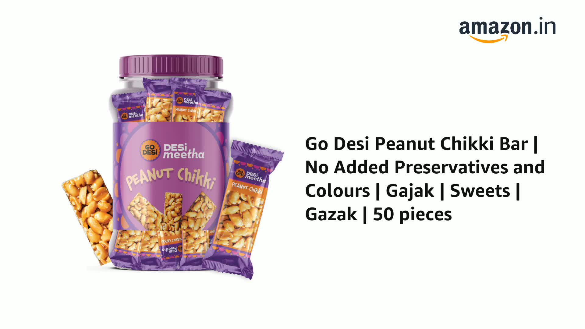 Go Desi Peanut Chikki Bar | No Added Preservatives and Colours | Gajak | Sweets | Gazak | 50 pieces