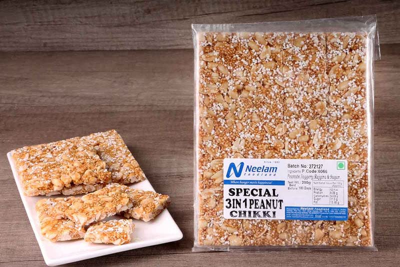 Crispy and Delicious Traditional 3 IN 1 Chikki made with best Quality Ingredient. An ideal appetizing healthy snack which every age person would love to have. Take along a snack box filled with chikki to school or office for easy snacking during breaks or travel. Enjoy delicious Chikki this Winter with friends and family. Spice up your mood with a Variety of snacks from Neelam Foodland with friends and Family in your next Party. Store in cool and dry place.