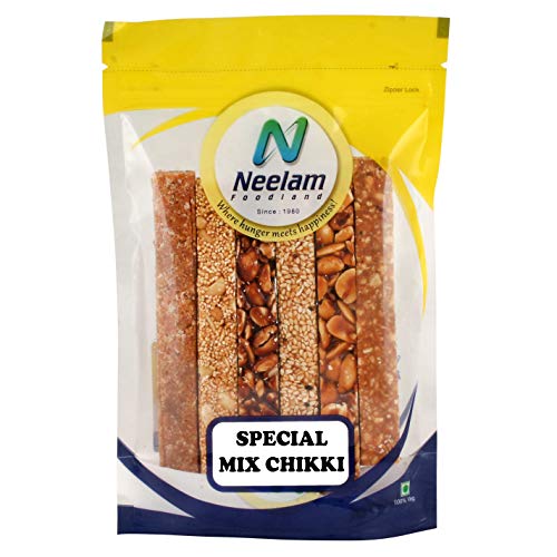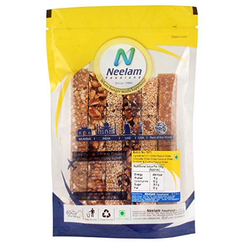 Neelam Foodland Mix Chikki made with best quality ingredients. A perfect snack for all time craving. Carry Chikki Pouch along with you to enjoy in Breaks or Traveling. Enjoy delicious chikki at your next party. Spice up your mood with variety of snacks from Neelam Foodland with Friends and Family. Store in cool and dry place.