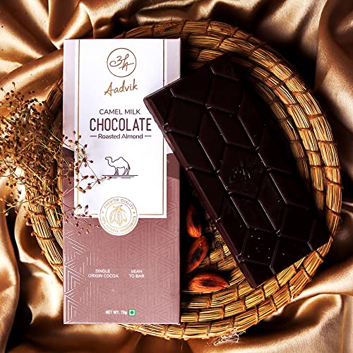 Aadvik Chocolate Roasted Almond Pack of 2 Made with Camel Milk Premium and Natural Chocolate 140 Grams