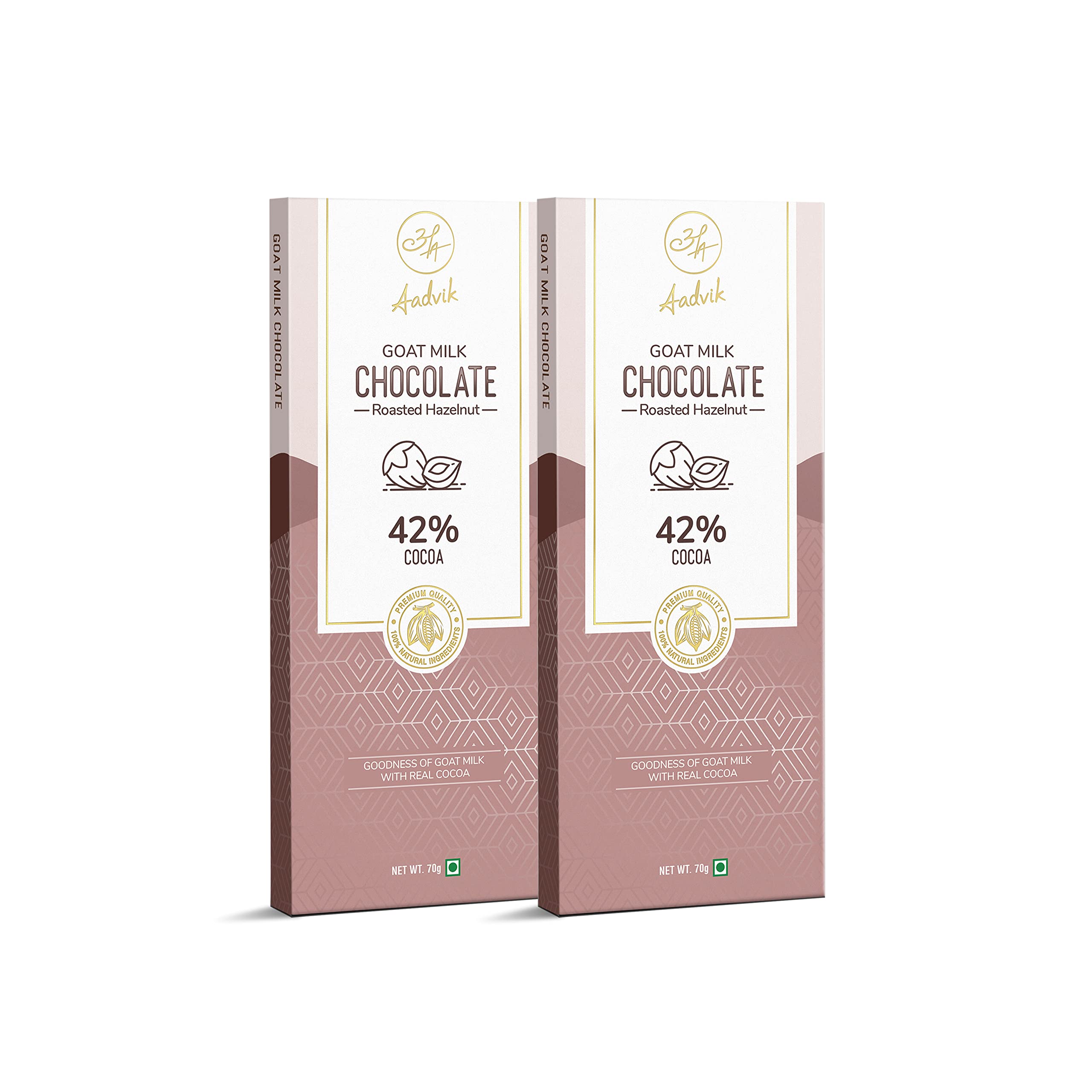 Aadvik Goat Milk Chocolate | Roasted Hazelnut | 140gms | 100% Natural & Premium Ingredients | Pack of 2