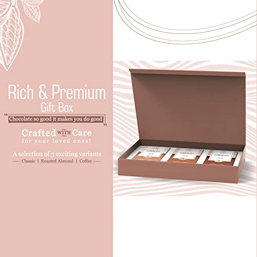 Aadvik Premium Gift Box of Camel Milk Chocolates | Single Origin Cocoa from Kerala |Natural Ingredients ONLY |Pack of 3 |Coffee |Roasted Almonds |Classic |210gms