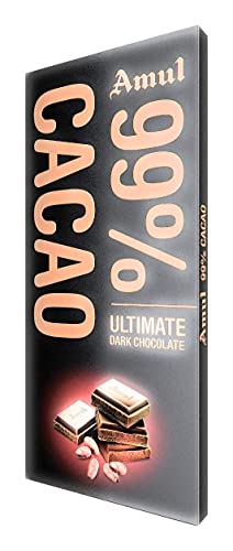 Amul 99% Cacao is an exceptional chocolate experience that delights you with the full-bodied rich taste & strength of single origin cocoa beans. Best enjoyed nibbled to truly appreciate the striking notes of fresh pure cocoa. Amul 99% Cacao has zero sugar and is a delight for extremely dark and bitter chocolate connoisseurs. Try this only if you have enjoyed Amul dark 55% Amul Bitter 75% and Amul 90% Bitter chocolates. It is really really Bitter and Bitter at its best.