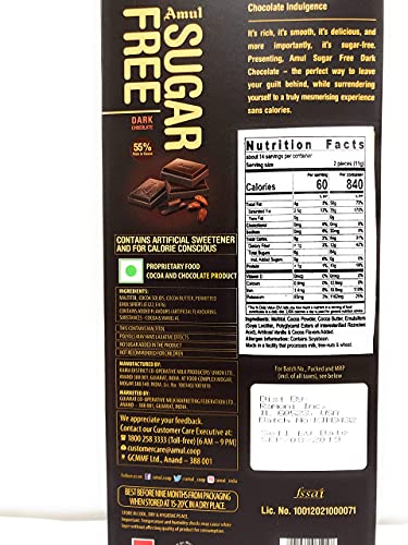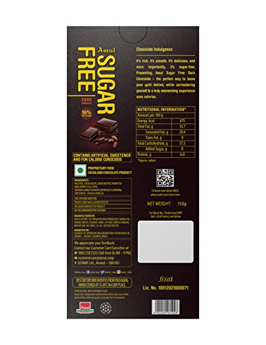 Amul Sugar Free Dark Chocolate, 150 Gm