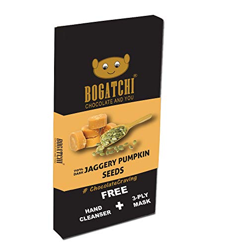Bogatchi 70% dark jaggery chocolate provides best quality dark chocolate experience with real cocoa content. These are intense dark chocolate for true chocolate lovers. Perfect choice for dark chocolate enthusiasts. Comes loaded with pumpkin seeds