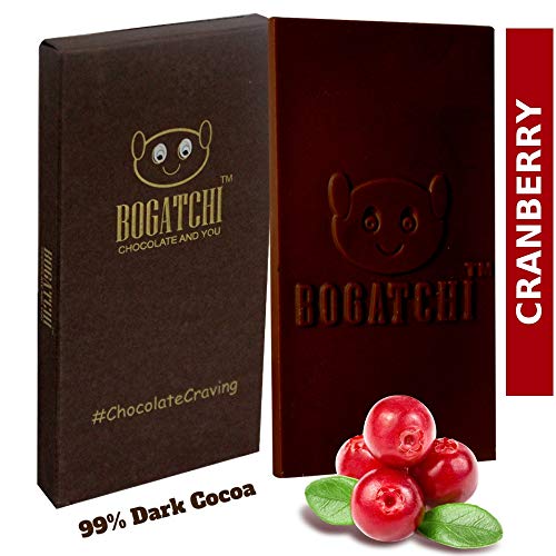 Bogatchi 99% dark chocolate provides best quality dark chocolate experience with real cocoa content. These are intense dark chocolate for true chocolate lovers. Perfect choice for dark chocolate enthusiasts. Comes loaded with cranberries