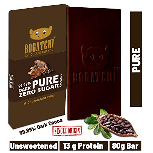 Bogatchi 99% dark chocolate provides best quality dark chocolate experience with real cocoa content. These are intense dark chocolate for true chocolate lovers. Perfect choice for dark chocolate enthusiasts. Good choice for people focusing on keto diet low carbs gym chocolates
