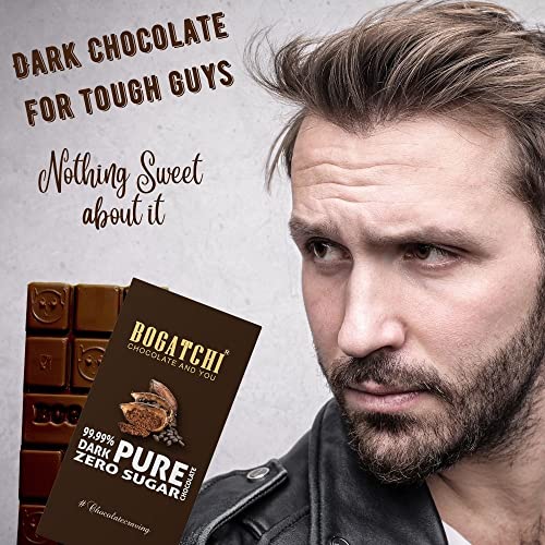 BOGATCHI 99.99% Dark Handcrafted Chocolate Sugar Free Real Cocoa Intense Dark Chocolate Zero Sugar 80 gm