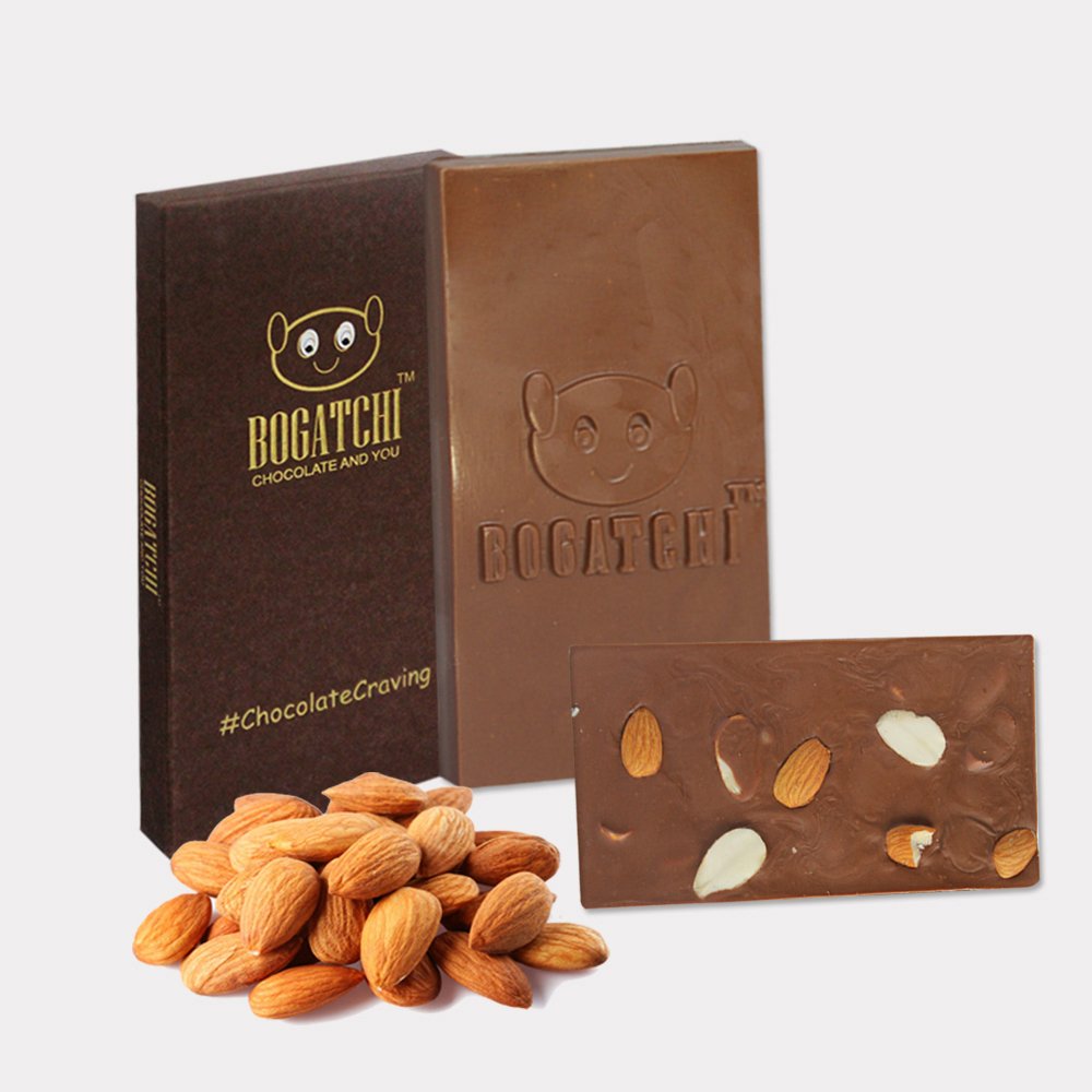 With bogatchi treat your self with richness of the best quality alomnds submerged in yummy 30% dark chocolate. Bogatchi chocolates are enriched with premium nuts which you can experience with each bite.