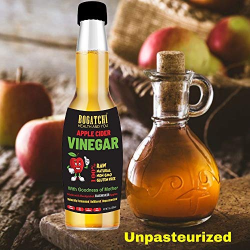 BOGATCHI apple cider vinegar is made of handpicked Kashmir apples. The process is natural fermentation and packaging with no filtering no pasteurization and no dilution. The apples are allowed to age naturally. Made with strand of mother contains natural proteins vitamins and good bacteria. Product benefits: rich in enzymes & potassium support a healthy immune system helps control weight promotes digestion & ph balance helps soothe dry throats helps remove body sludge toxins; personal benefits: helps maintain healthy skin helps promote youthful healthy bodies soothes irritated skin relieves muscle pain from exercise.