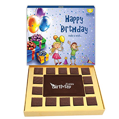• BOGATCHI BIRTHDAY SPECIAL - HAPPY BIRTHDAY Chocolate Box contains Crispy and Butter Scotch in 18% dark Cocoa