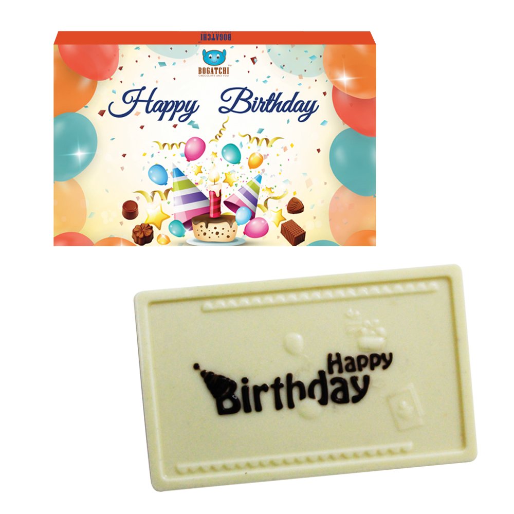 • BOGATCHI BIRTHDAY SPECIAL - HAPPY BIRTHDAY Chocolate Bar made up in White Cocoa.