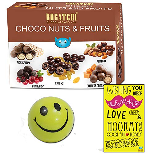 BOGATCHI Birthday Rich Dry Fruit Collection Gift Chocolate Coated Assorted Nuts and Fruits 100g + Free Birthday Greeting Card + Free Smiley Ball