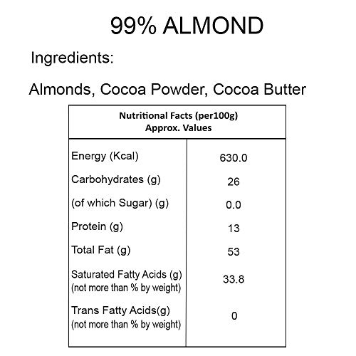 99% Dark Handcrafted Chocolate. Classic Almond Taste