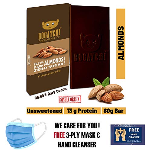 BOGATCHI Chocolate 99% Dark| Almonds | Real Cocoa Intense Dark Chocolate 80 gm
