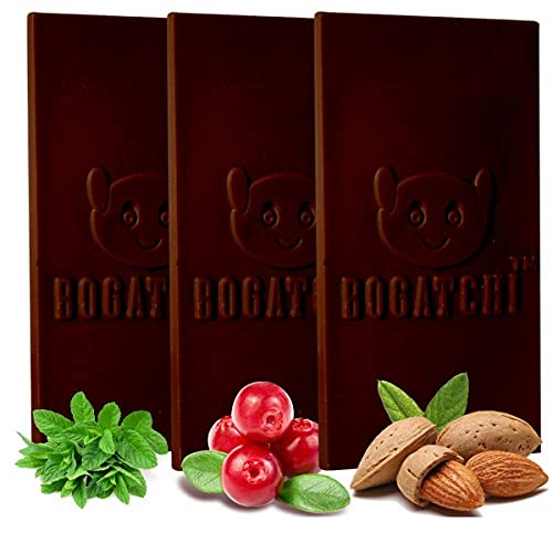 BOGATCHI Chocolate 99% Dark|3in1 (Pure Cranberry Almonds)| Real Cocoa Intense Dark Chocolate 80 gm