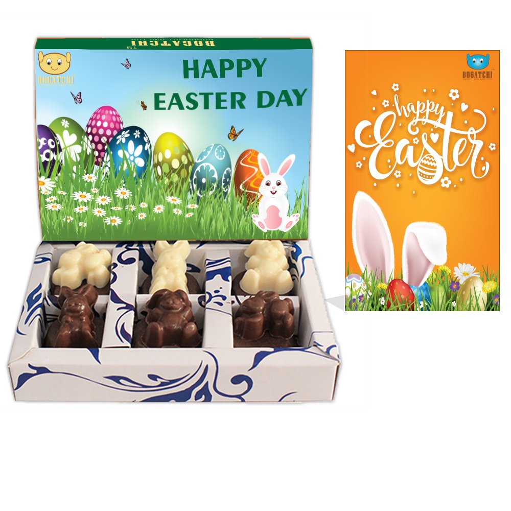 BOGATCHI Chocolate Bunnies Easter Chocolate Bunnies Chocolate Bunnies for Easter Celebrations 6 Pieces + Free - Easter Greeting Card