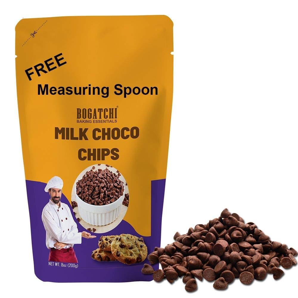 BOGATCHI Chocolate Chips for Baking and Decoration Milk Chocolate Chips Milk Chocolate Baking Chips Gluten Free and Tasty 200g with Free Measuring Spoon