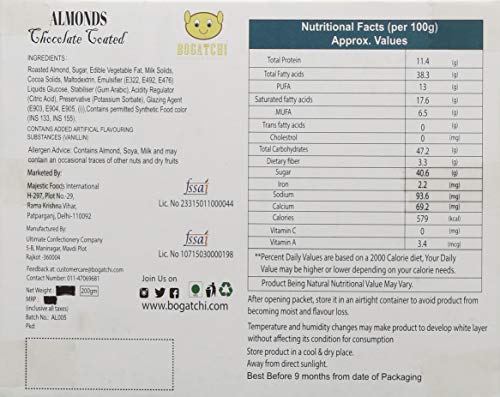 BOGATCHI Chocolate Coated Almonds Rich Dark Chocolate Coated Dry Fruits 200g