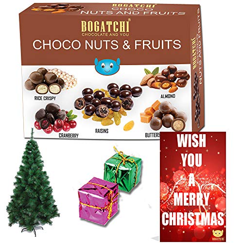 BOGATCHI Chocolate Coated Assorted Nuts and Fruits Chirstmas Rich Dry Fruit Collection Gift 200g + Free X-mas Gift + Free Chirstmas Greeting Card