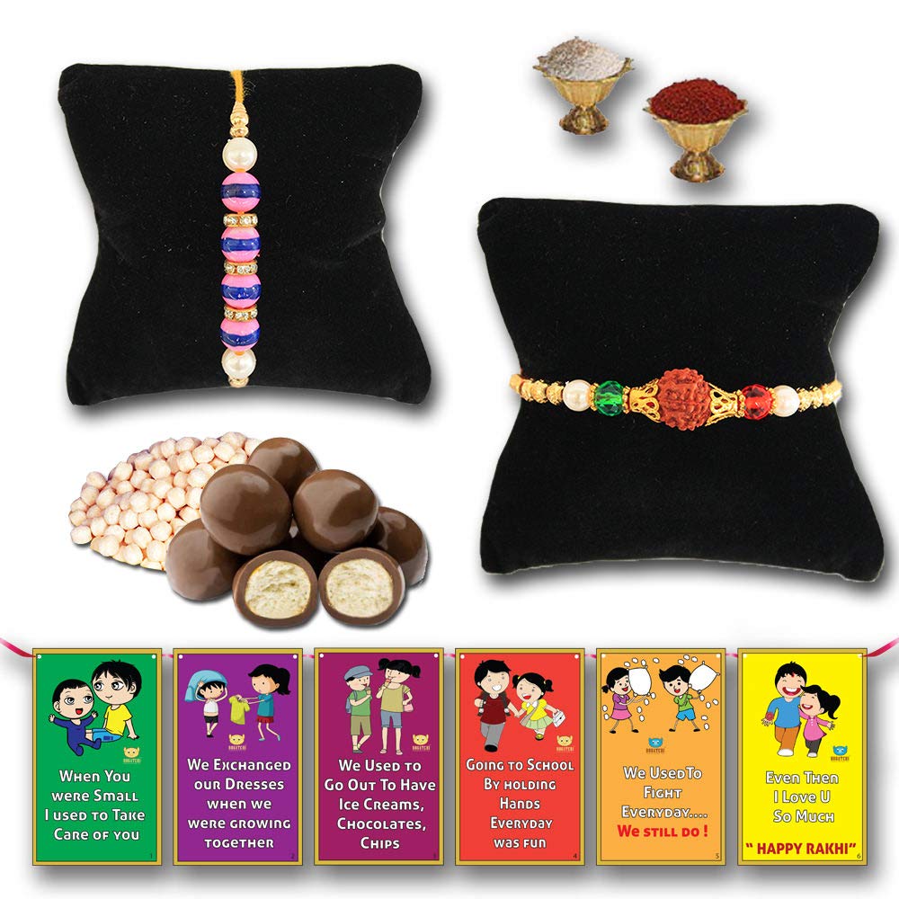 BOGATCHI Chocolate Coated Butterscotch Nuts/Crispy - 50g FREE with Pack of Pink Pearl and Rudraksh RakhiComplete Rakhi Set for bothers + FREE Roli Chawal + FREE Rakhi Special Brother Sister Story Cards Set